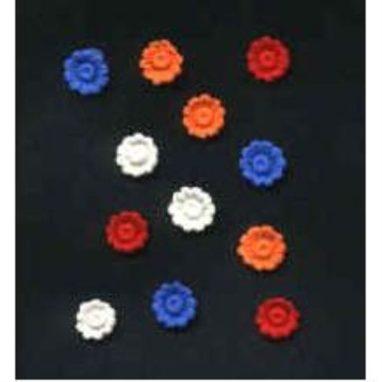 20 UNIDADES – PEÇA EM BISCUIT COMPOSTA DE MARGARIDAS DE CORES DIVERSAS – MEDIDA: 1.2 x 1.2 cm – MASSA DE BISCUIT