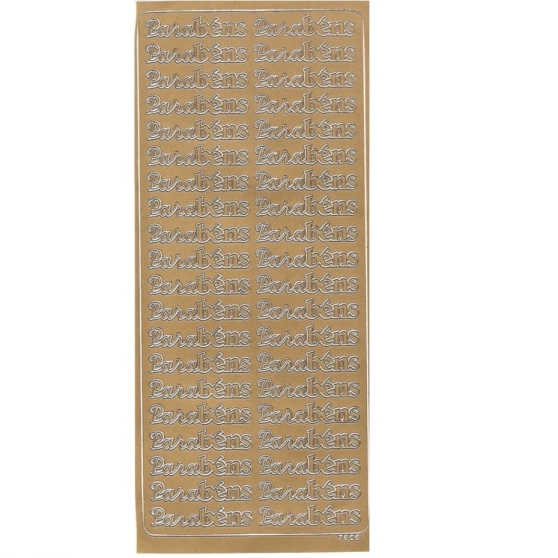 AUTOCOLANTE – PARABÉNS – FOLHA COM 40 PALAVRAS – DOURADO
