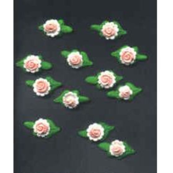 10 UNIDADES – PEÇA EM BISCUIT COMPOSTA DE FOLHA COM APLICAÇÃO DE ROSINHA SOBRE MARGARIDA – MEDIDA: 2.5 x 1.5 cm – MASSA DE BISCUIT
